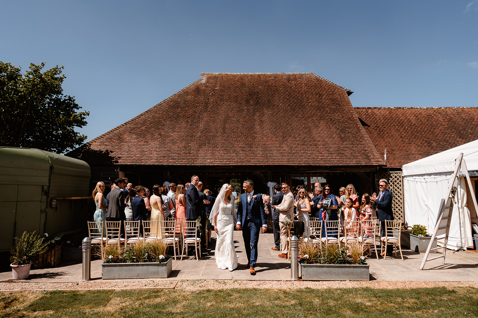 In the summer months, country garden weddings naturally flow between the lawn and our large, heated marquee. We pride ourselves on offering a blank canvas to allow our couples to decorate and style the venue to their own individual taste. In cooler months, the Kentish Oak Barn is perfect for ceremonies and dining. The adjacent stylish 'Stags barn' is perfect for pre-dinner drinks and taps.